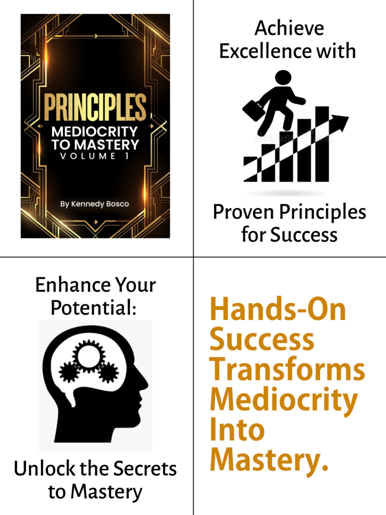 Kennedy Bosco is a distinguished author, motivational speaker, and personal development coach, best known for his transformative book PRINCIPLES: Mediocrity to Mastery. His work is rooted in a deep commitment to helping individuals and organizations unlock their full potential, guiding them on a journey from mediocrity to mastery.